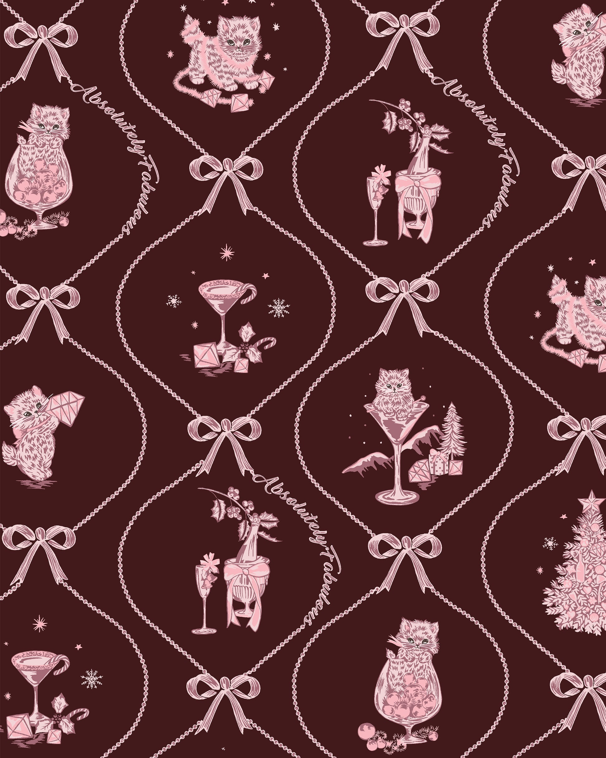 Top it off in a matching scrunchy. Features custom retro cat and diamonds holiday print and “Absolutely Fabulous” messaging. Designed to hold hair without leaving dents and keep your hair in good fashion.