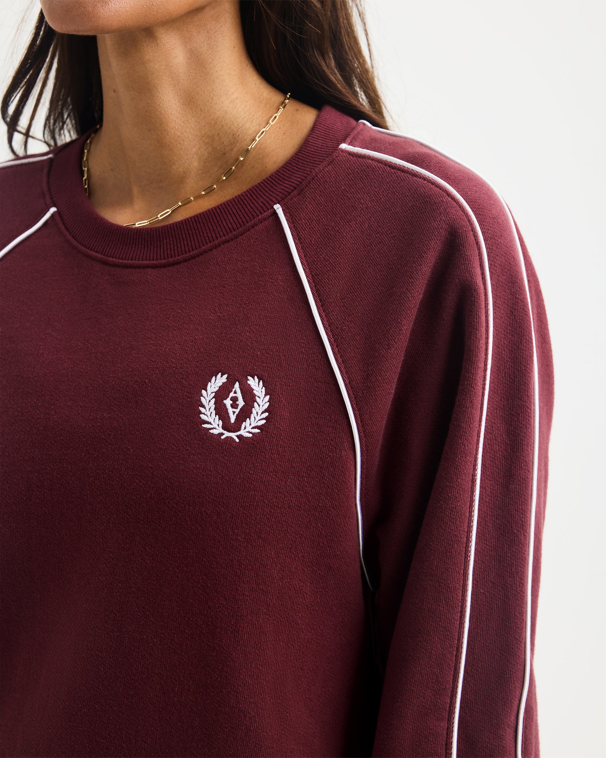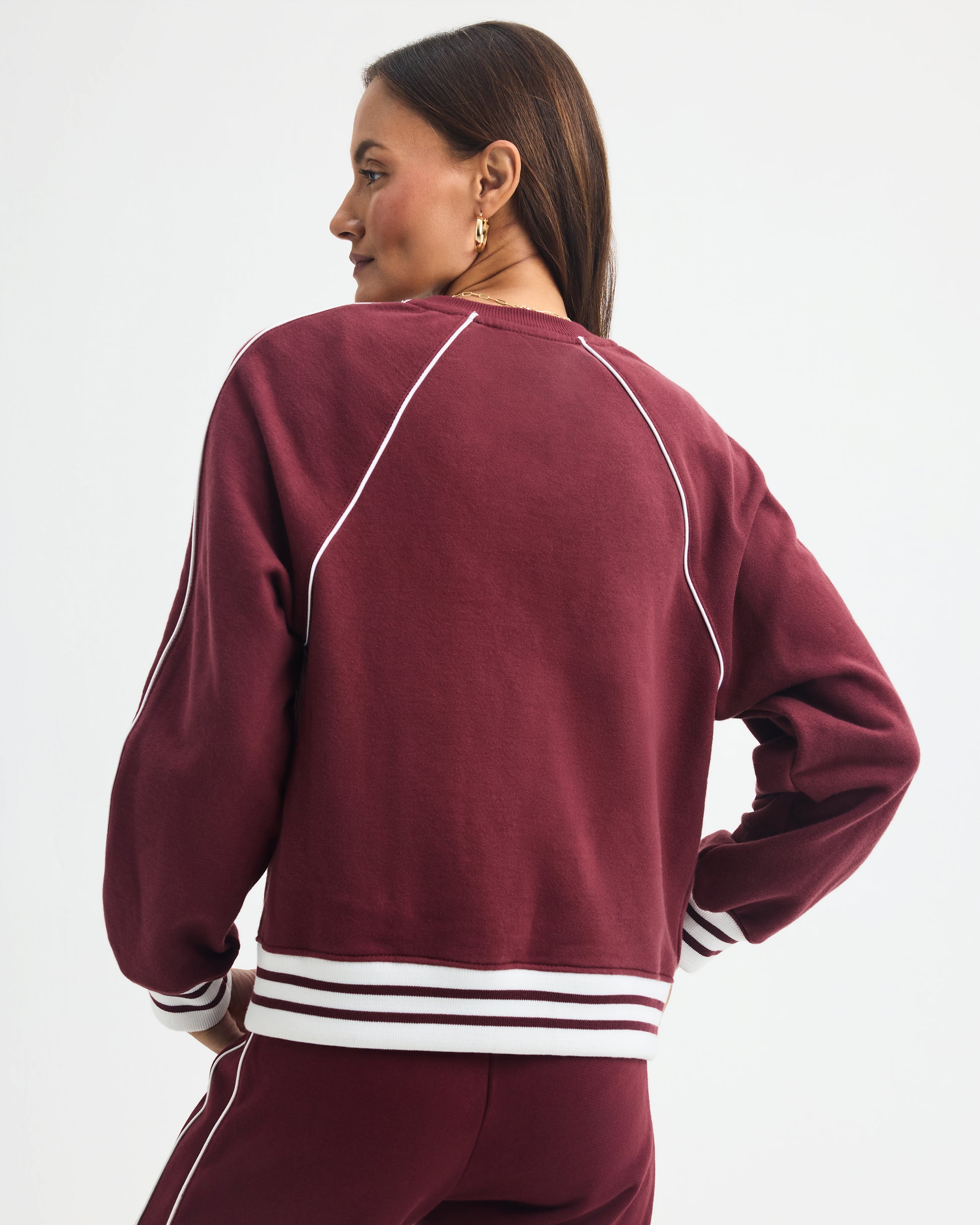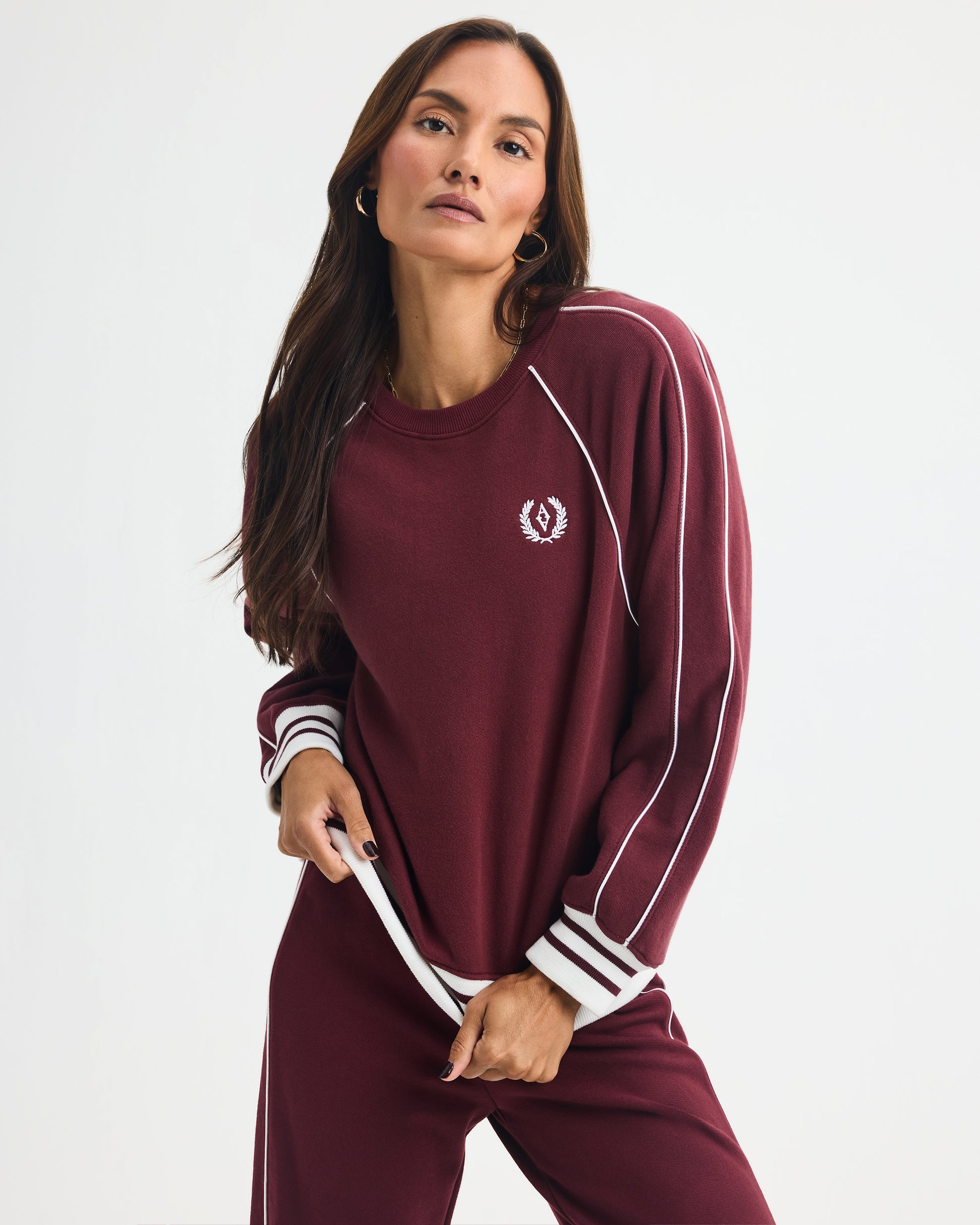 Retro sporty is the vibe in this medium weight french terry pullover. Features a custom Ayda crest embroidery along with striped rib and rope piping details. Runs true to size. Recommend sizing up for a more relaxed fit.
