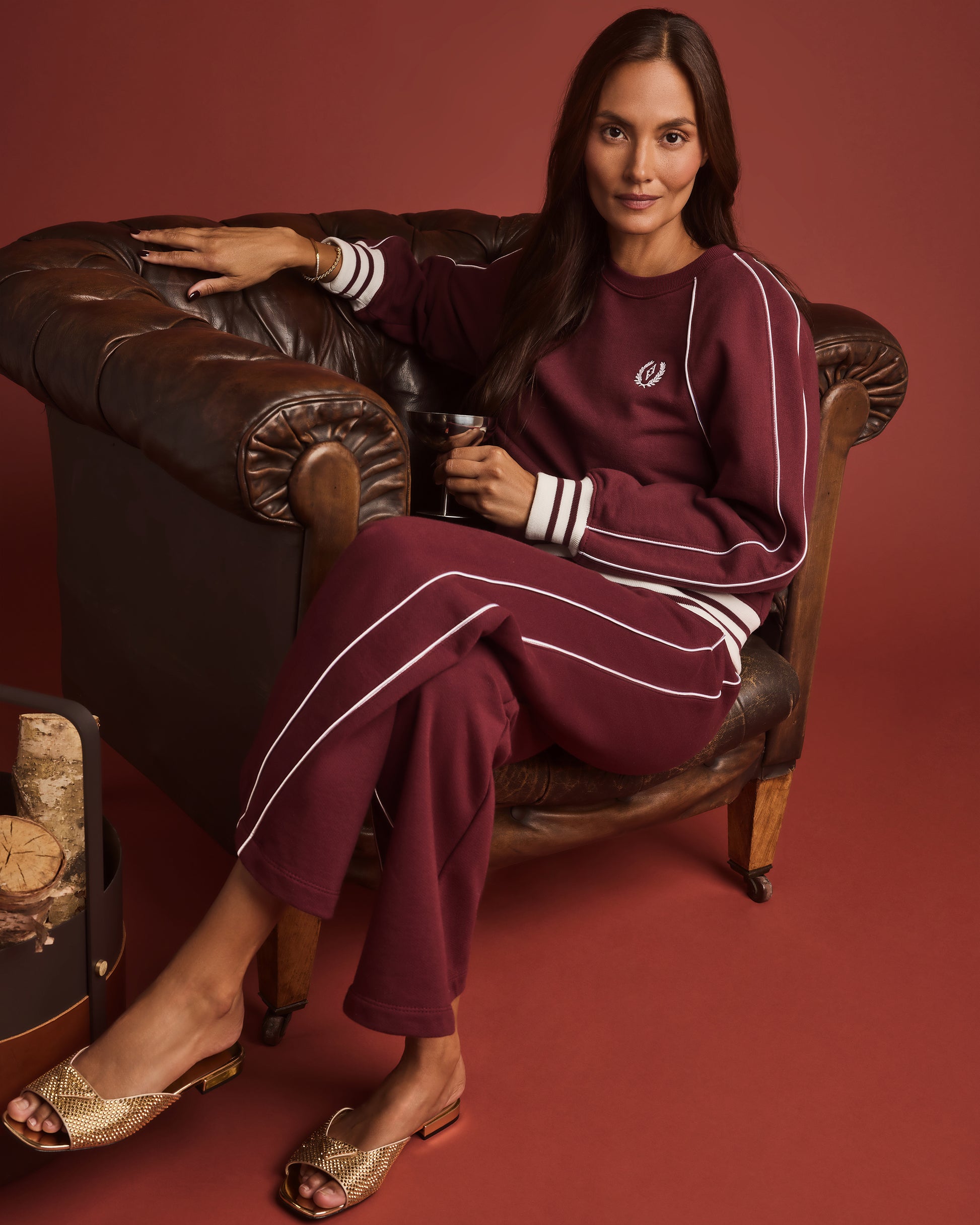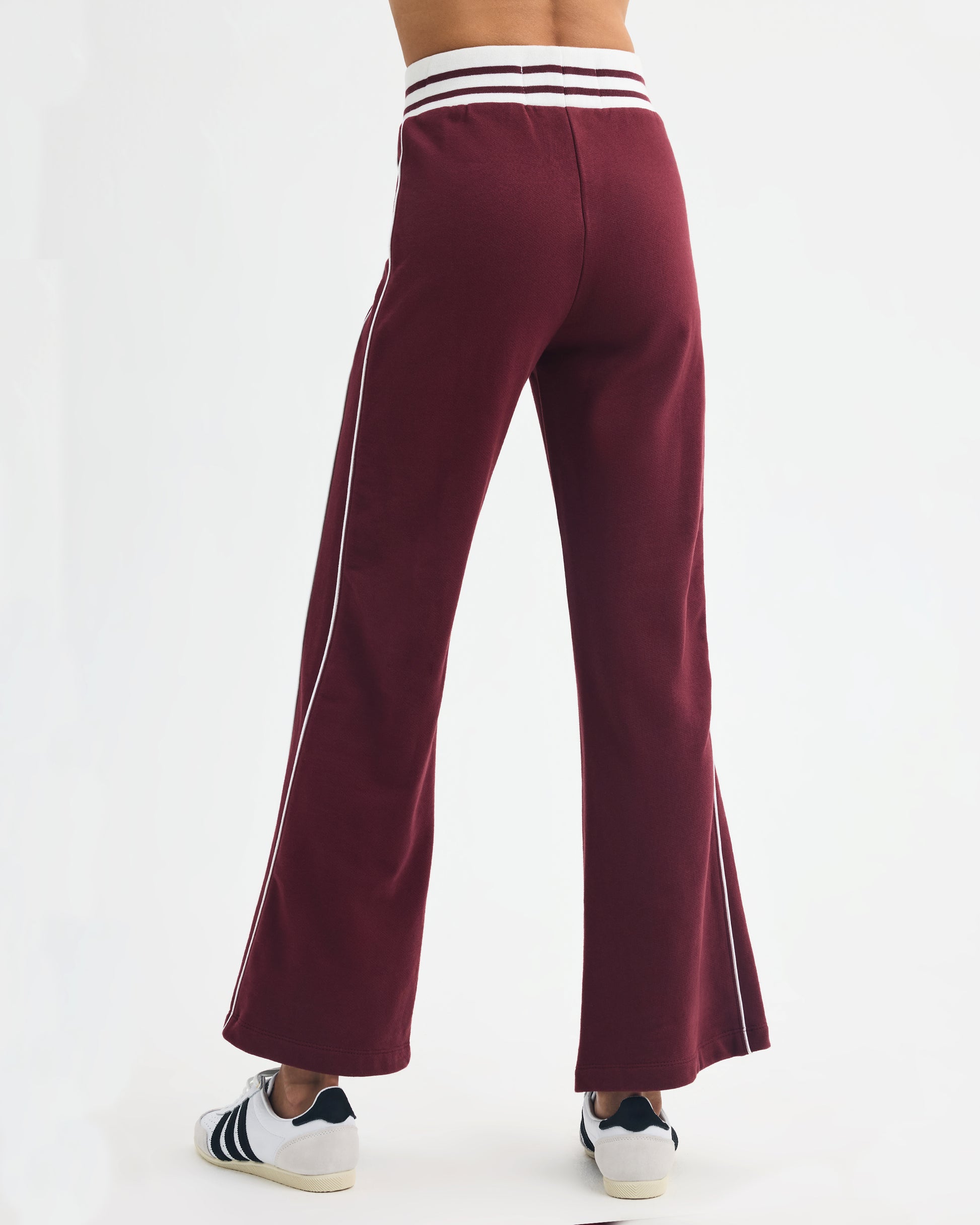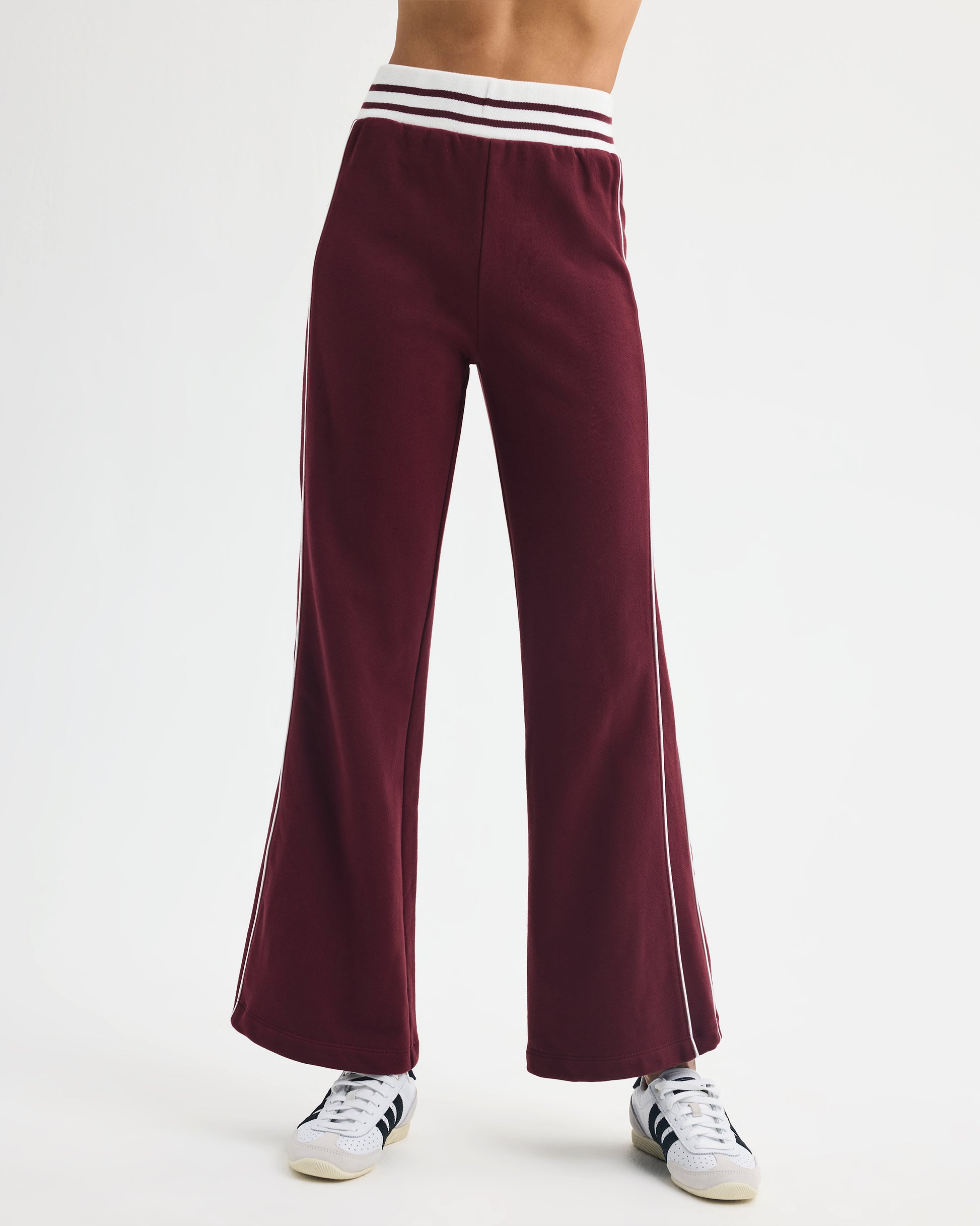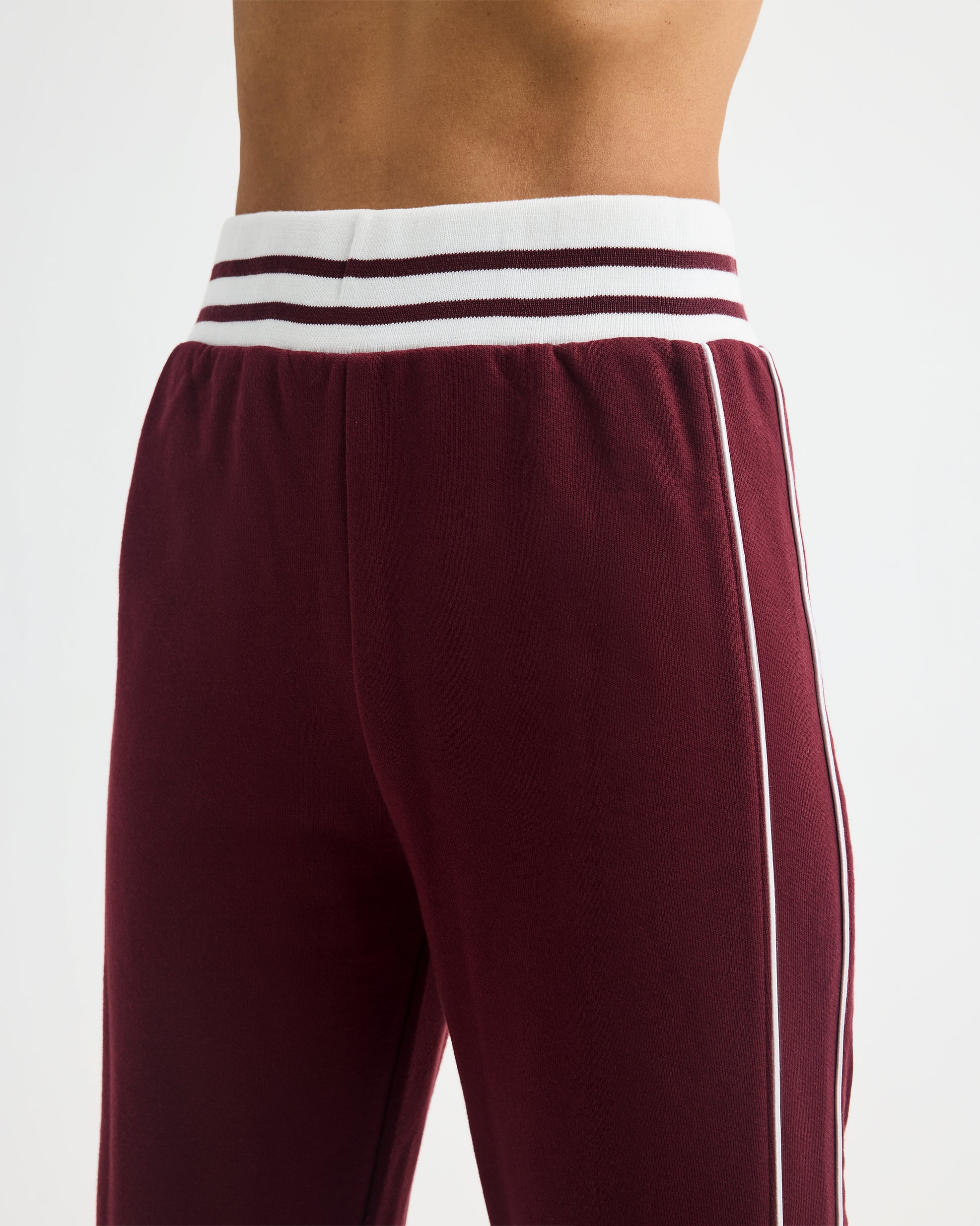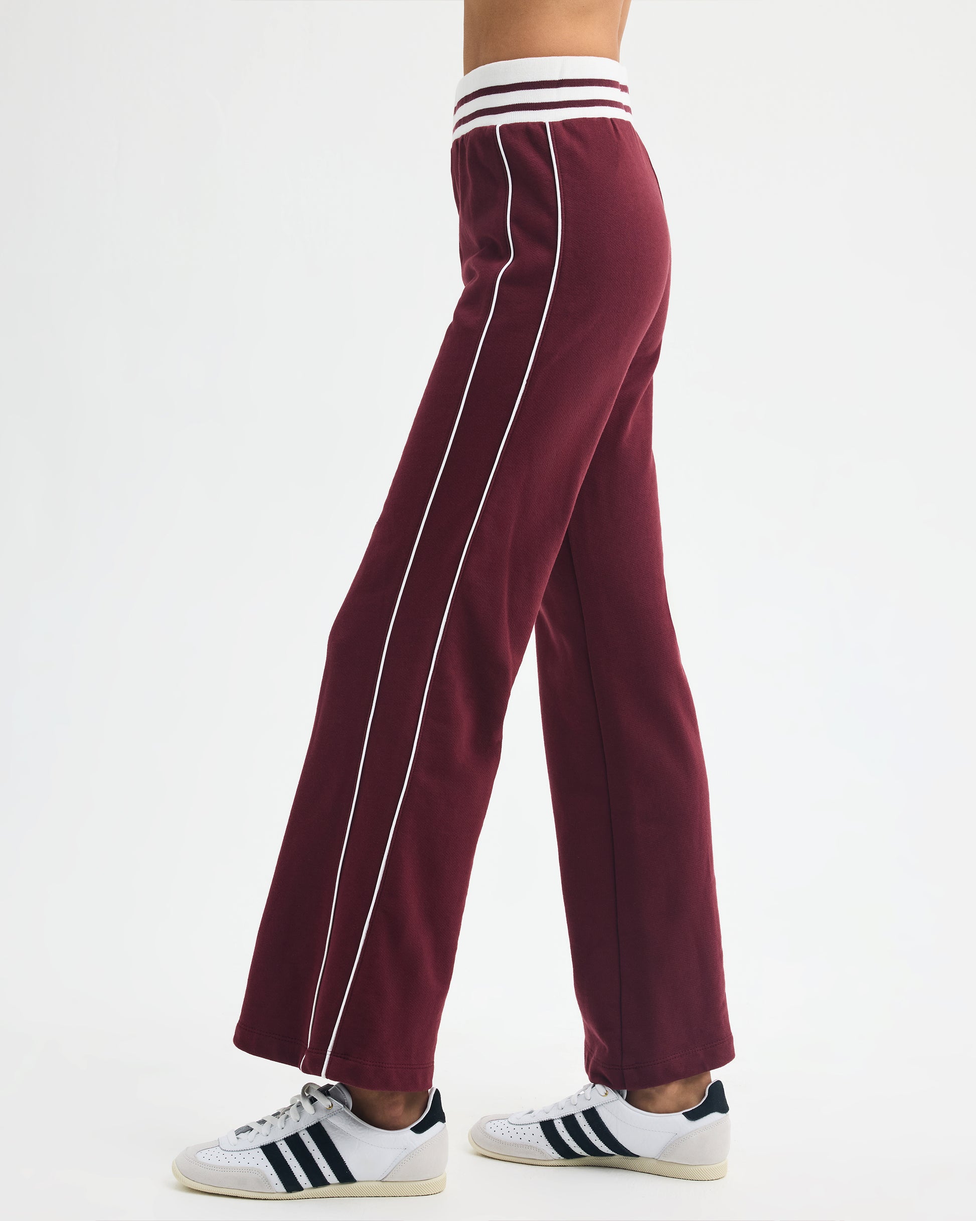Retro sporty is the vibe in this mediumweight french terry pant. Features a slim fit with flares, along with striped rib and rope piping details. Runs true to size.