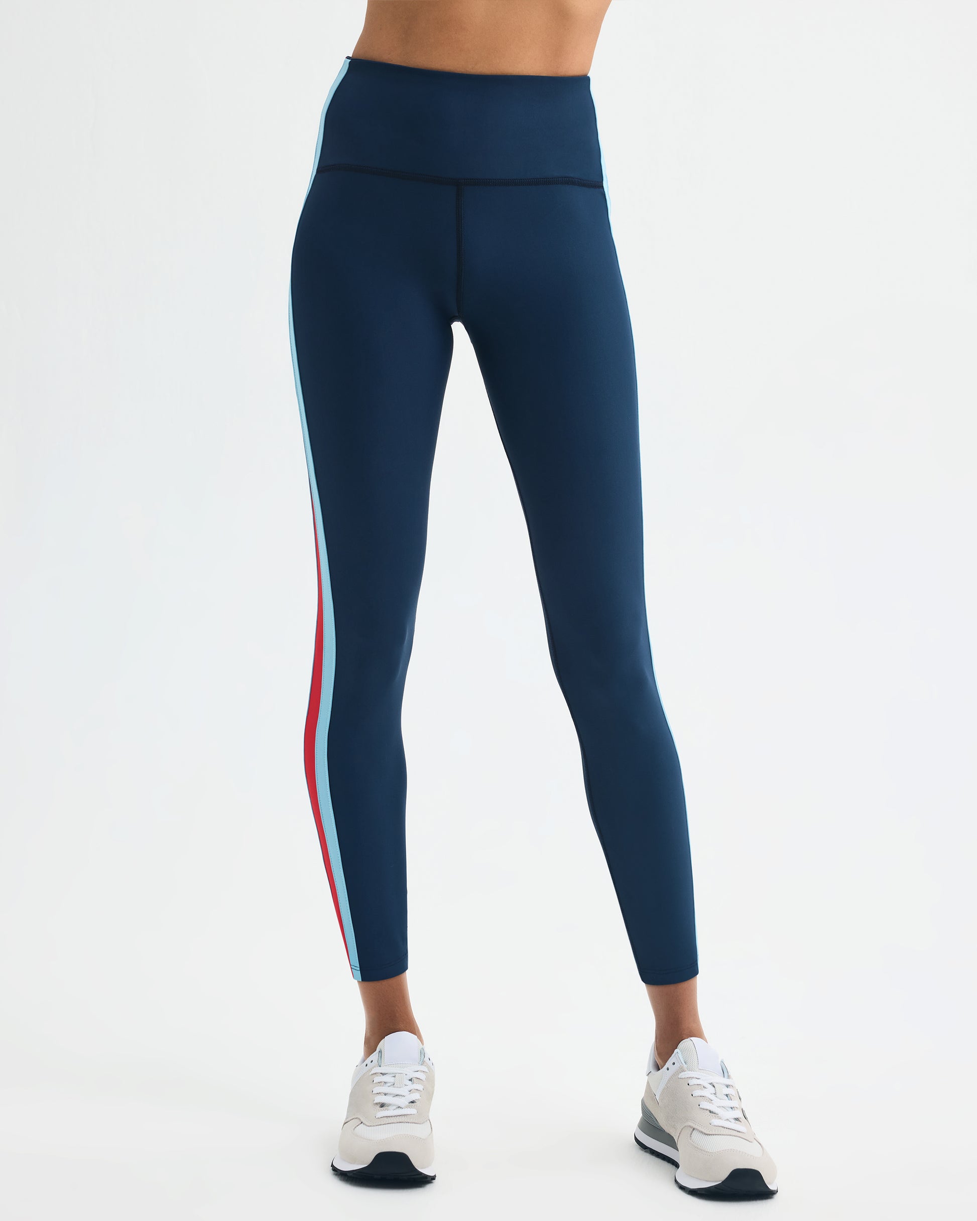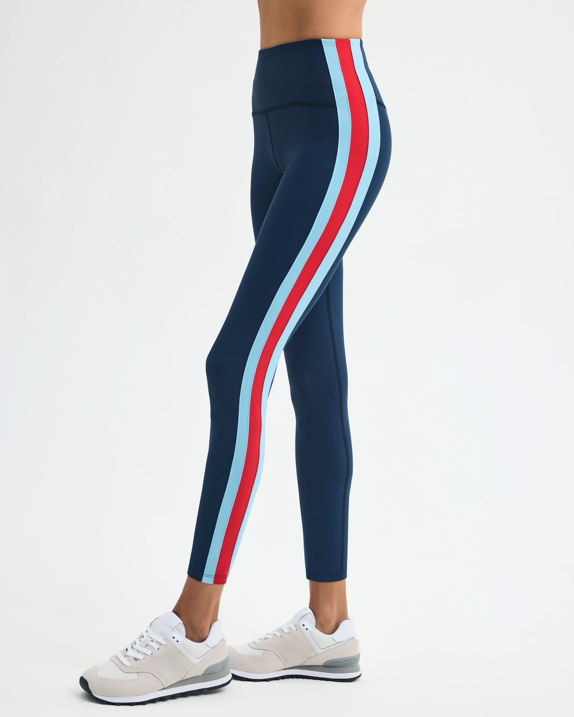 Don't call it a comeback. This hitmaker is a supportive, high-waisted spandex blend ⅞ legging featuring a hidden card pocket and retro racer stripe details on the side. Runs true to size.